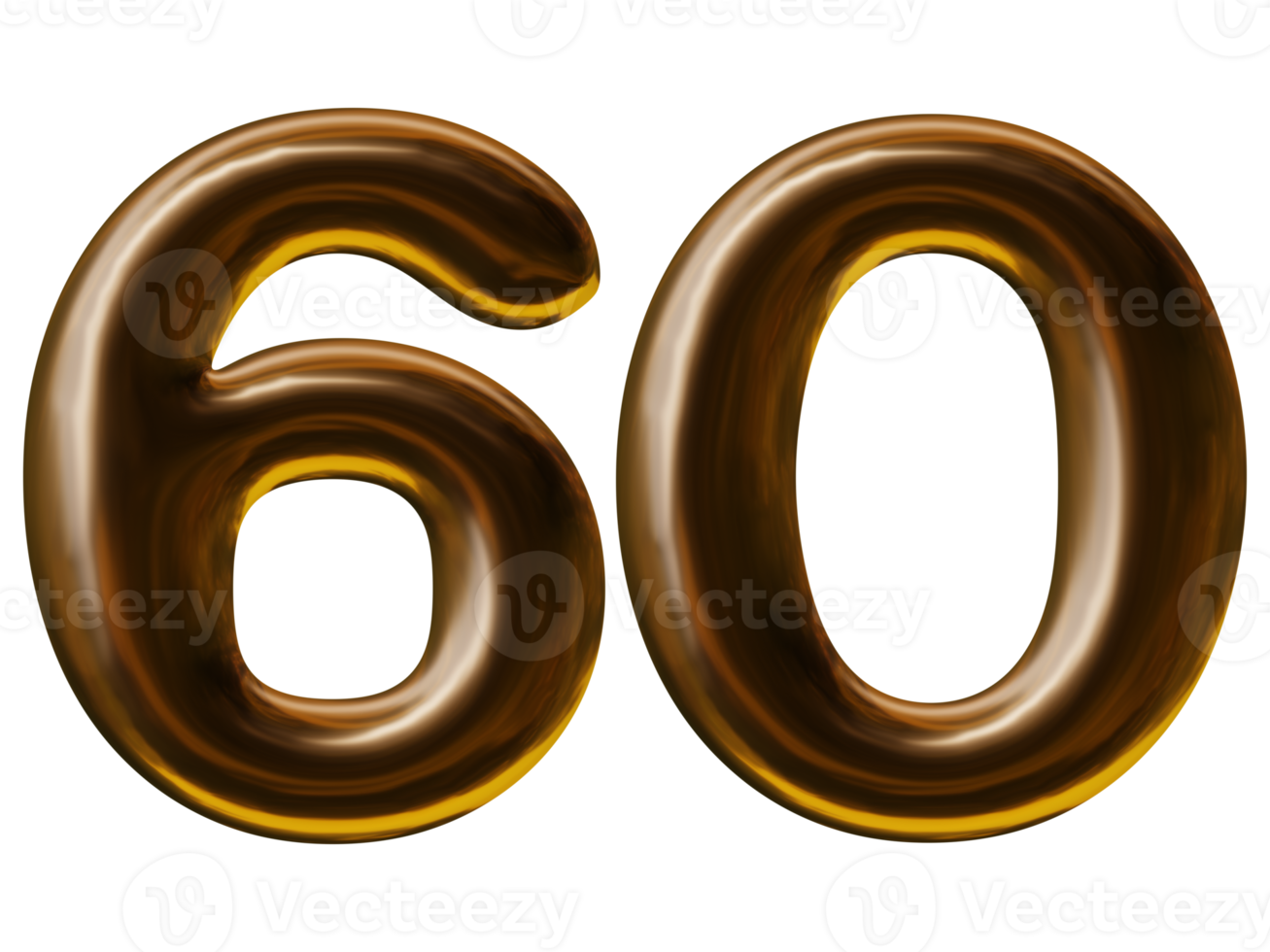 oro numero 60 sessanta brillante 3d numero fatto di oro 3d
