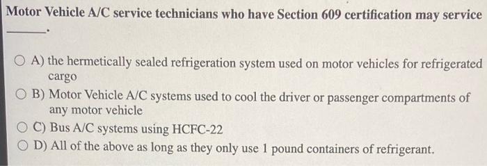Solved Motor Vehicle A/C Service Hoses for R 12 O A) Are Chegg com