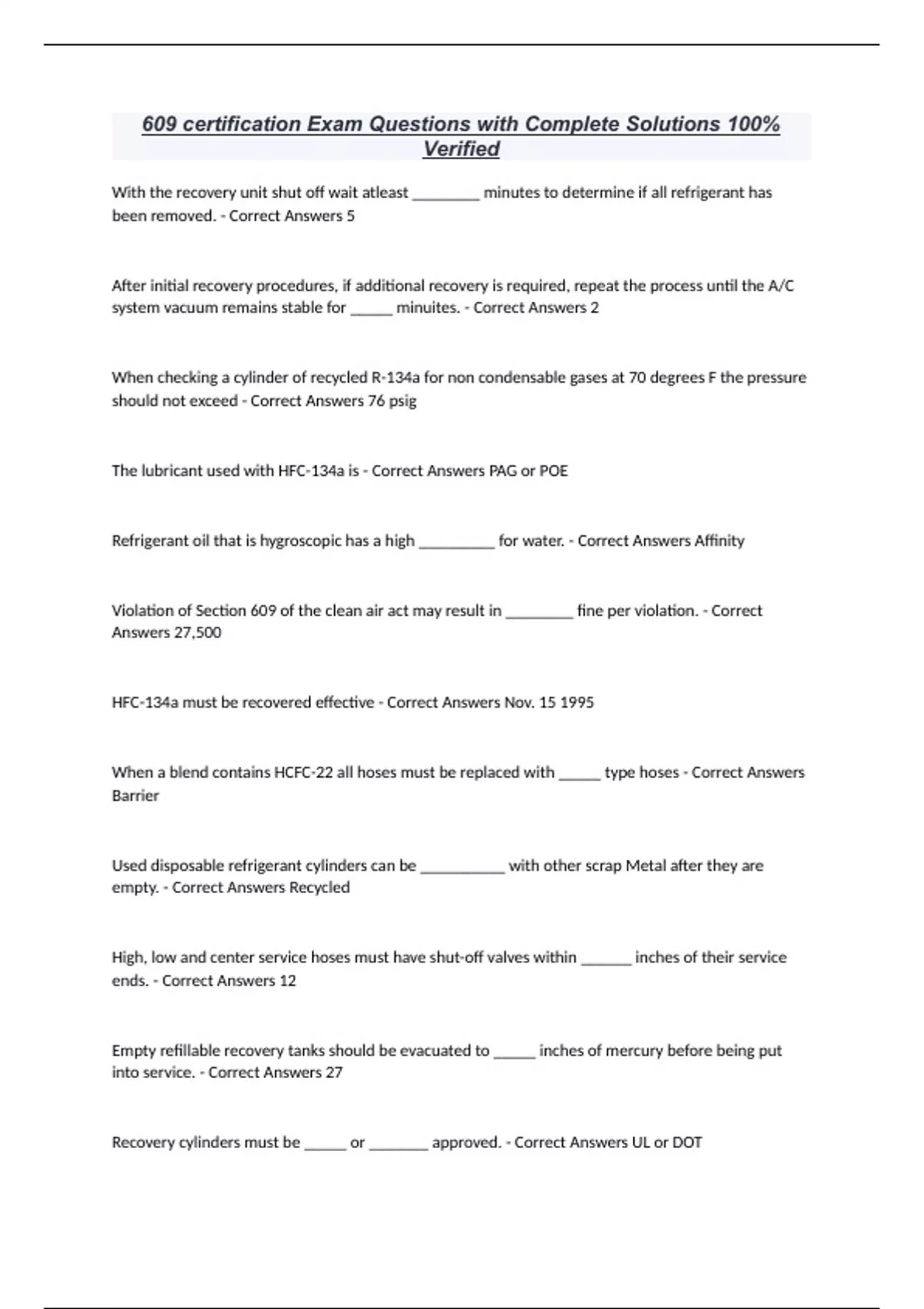 AC 609 CERTIFICATION QUESTIONS AND ANSWERS 100% CORRECT EPA 609