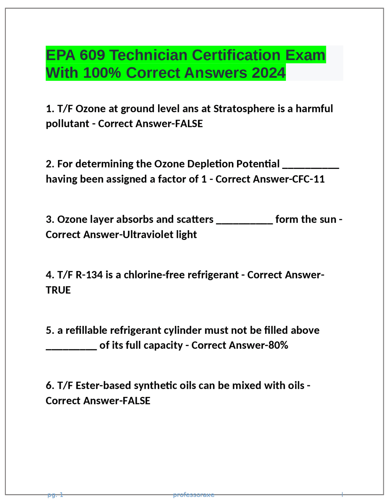 EPA 609 Practice Questions With Complete Solutions EPA 609 Stuvia US