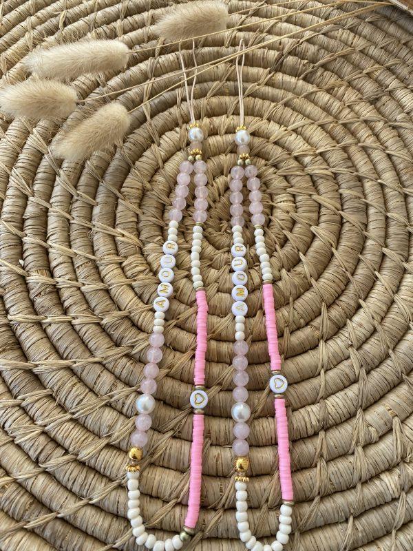 Bijoux de téléphone et bracelet Pierres Quartz Rose Bijoux de portable