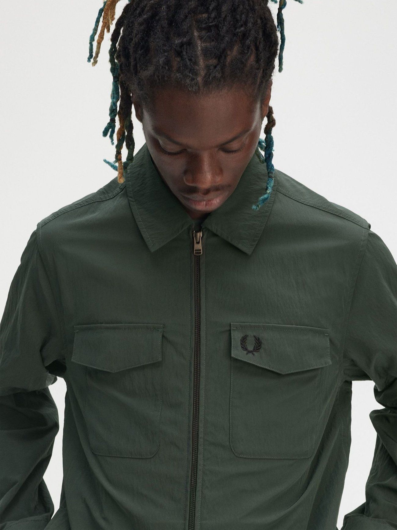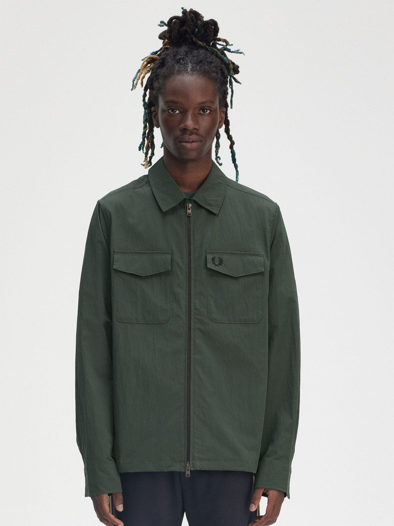 Fred Perry Mens Court Green Zip Through Overshirt Designerwear