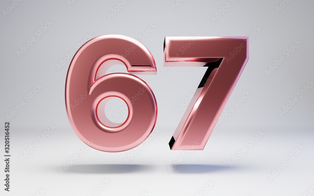 Rose Gold number 67 isolated on white background Stock Illustration