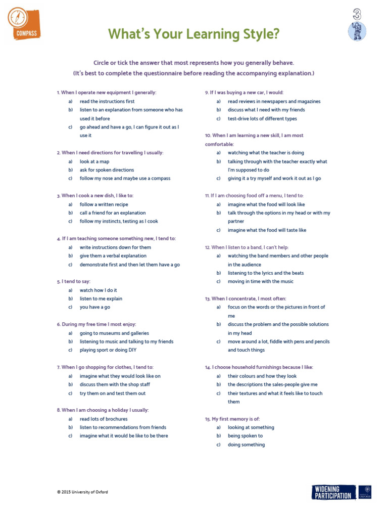 Free printable quiz on learning styles Download Free printable quiz on