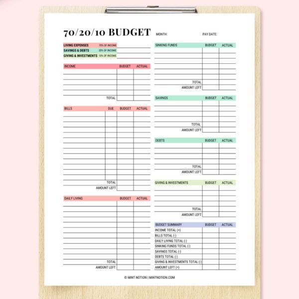 FREE 70 20 10 Monthly Budget Rule Template