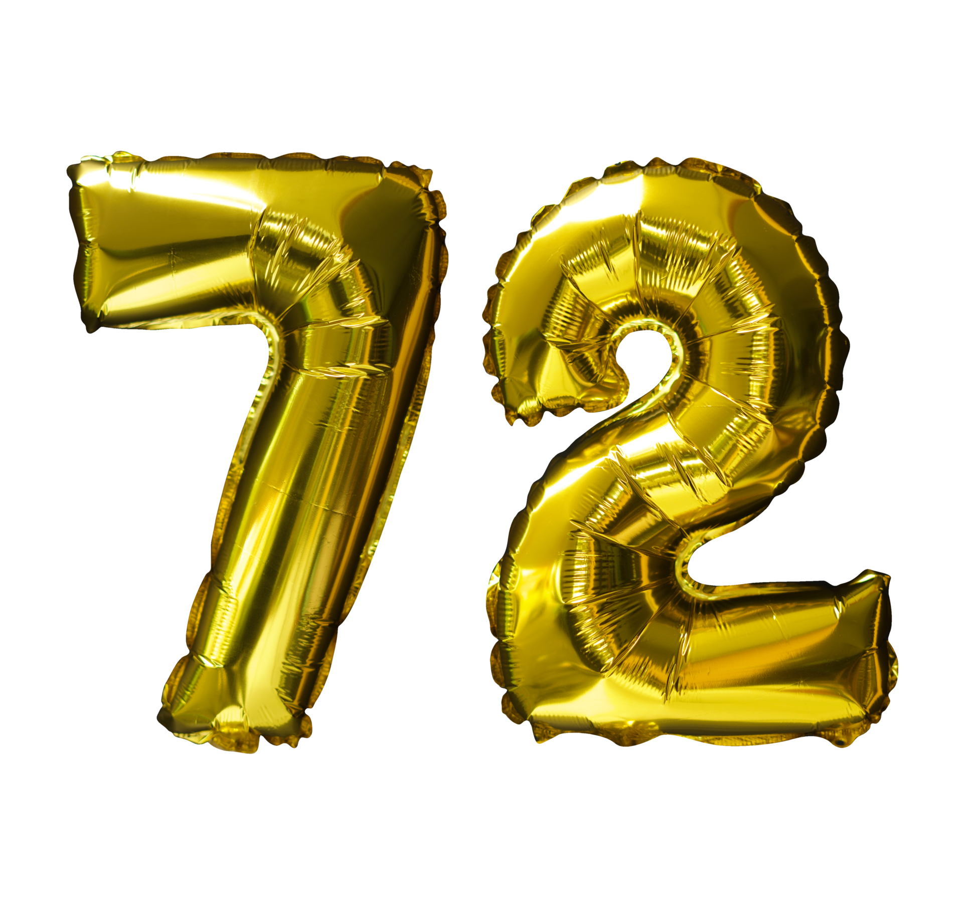 Gold 3d number 72 PNG transparent background birthday celebrations