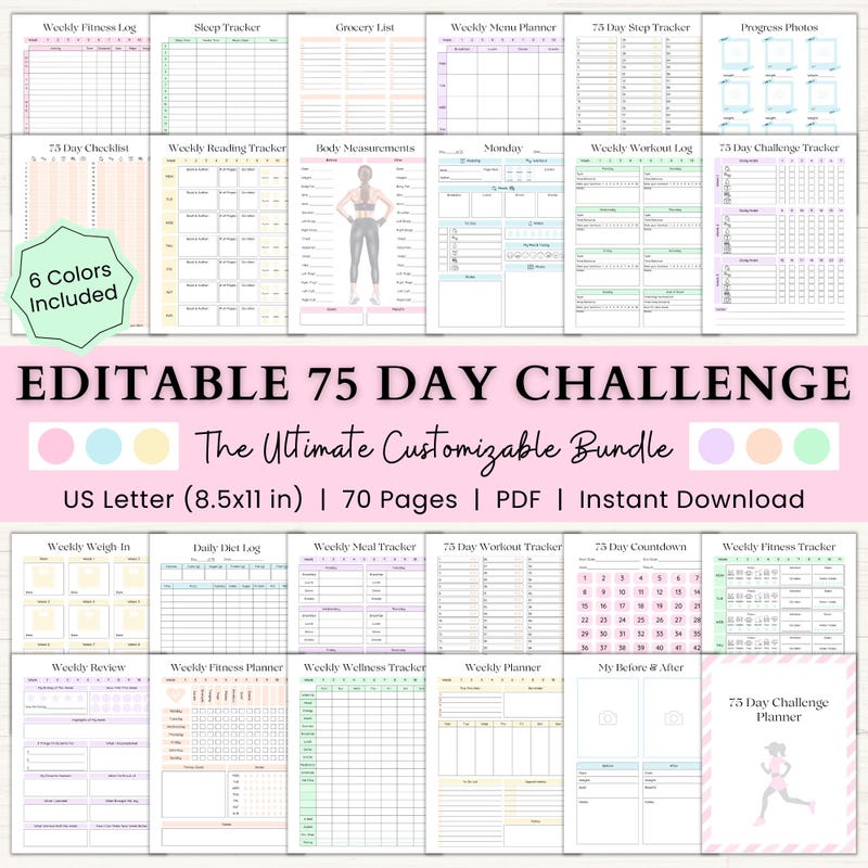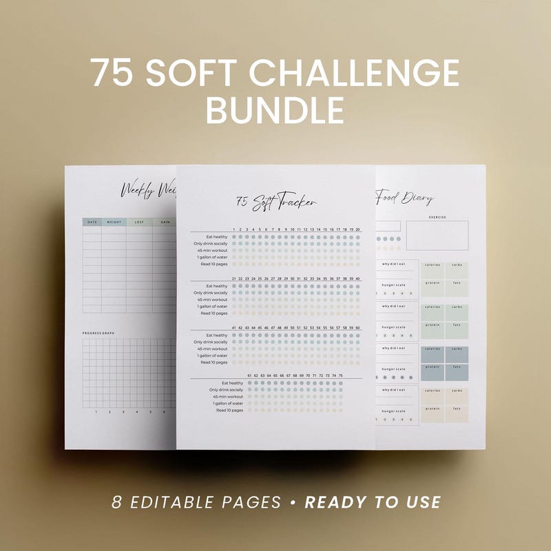 75 Soft Challenge Editable 75 Soft Tracker Printable A5 Planner