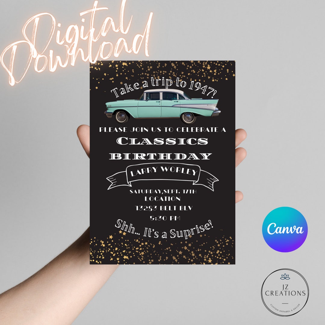 Editable 75th Birthday Party Invitation Template Vintage Man Birthday