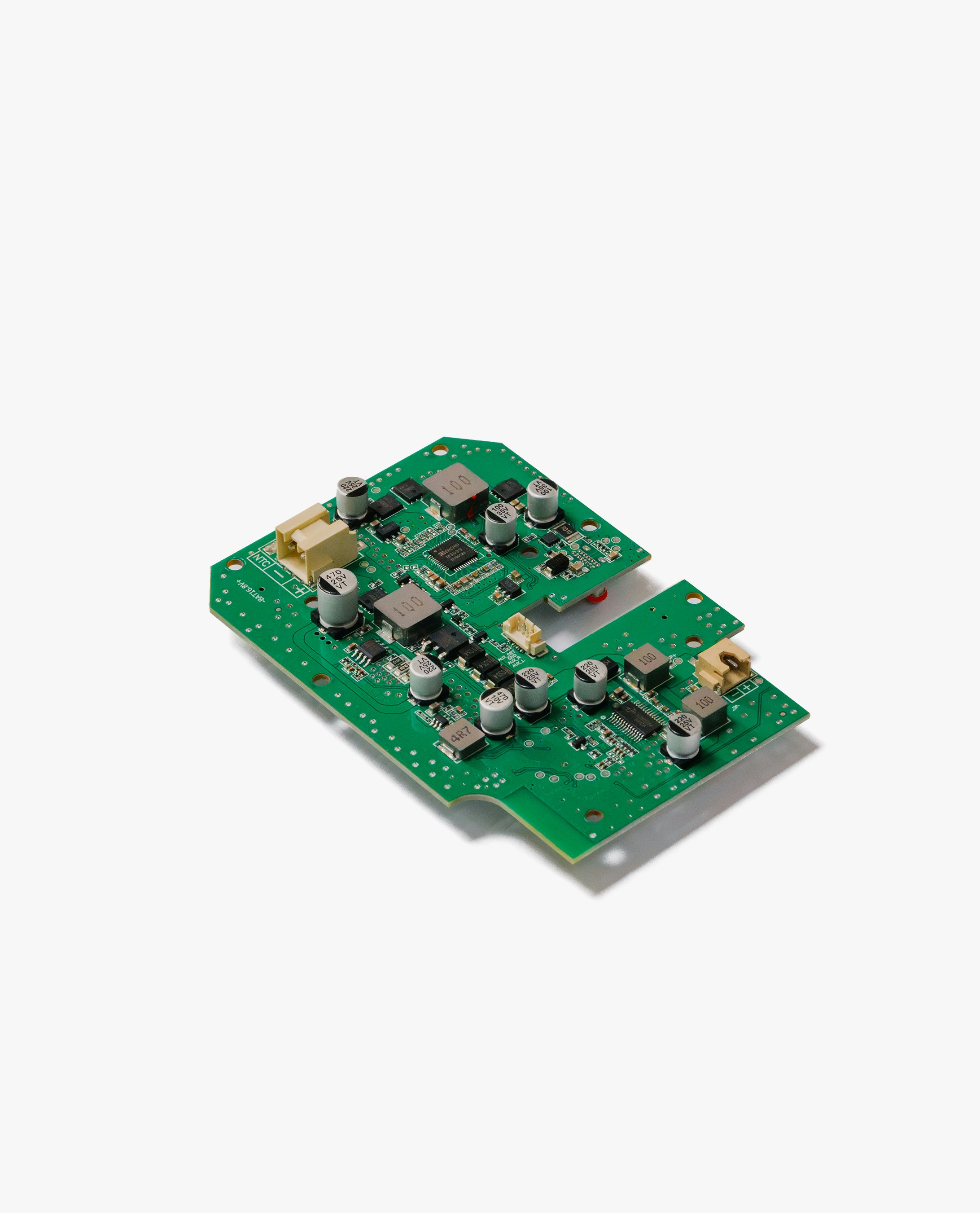 Un primer plano de dos componentes electrónicos sobre un fondo blanco
