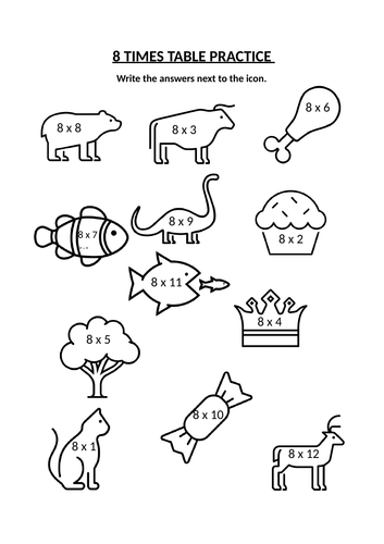 8 Times Table Worksheet with Pictures Teaching Resources