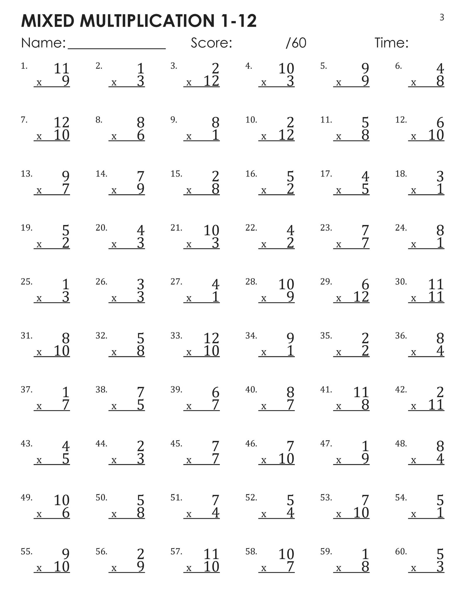 Mixed Multiplication Facts 1 12 Timed Tests Worksheets Etsy