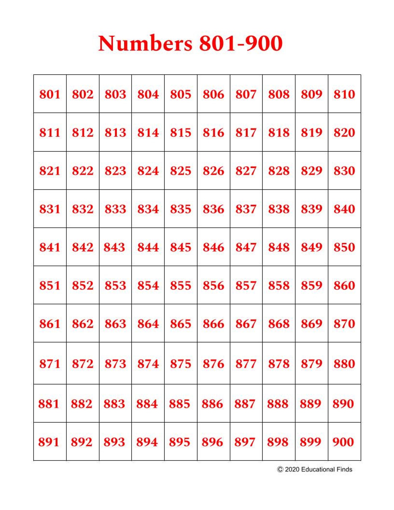 Numbers 801 to 900 Free Worksheet for Kids SKOOLGO