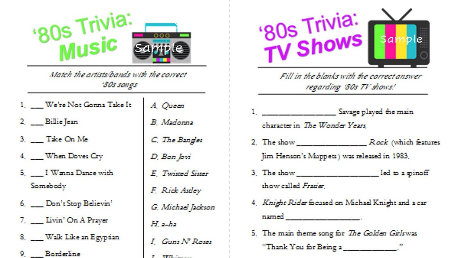 80s Trivia Questions and Answers Printable 80s Trivia Quiz Pub Night