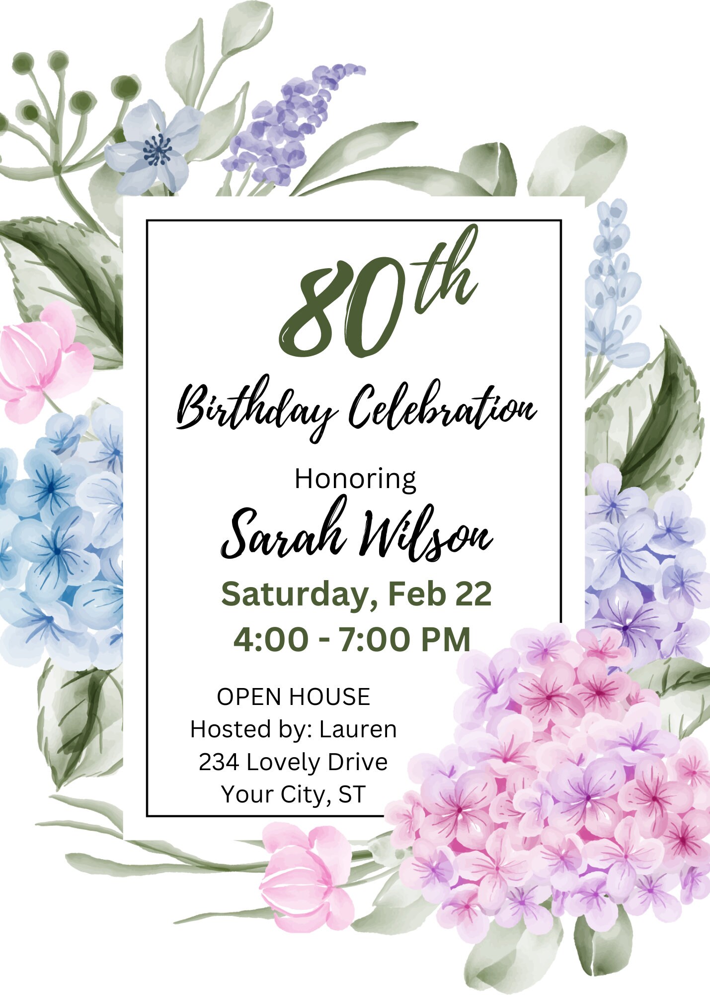 Floral 80th Birthday Invitation Templates Editable With MS Word