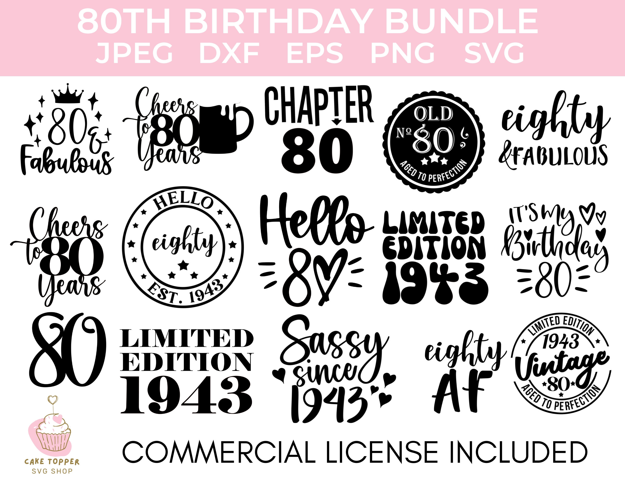 80th Birthday SVG Bundle PNG DXF Eps and Jpeg Included Etsy UK