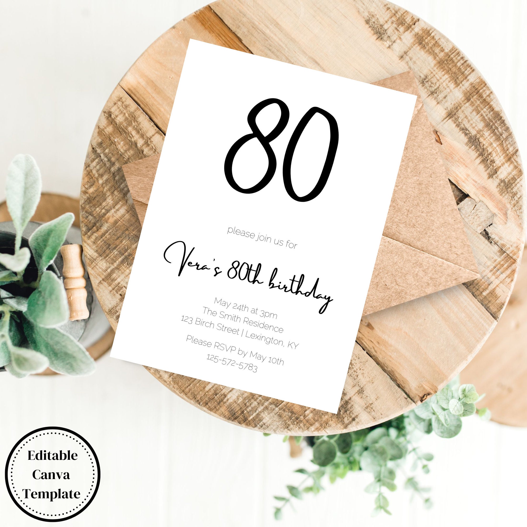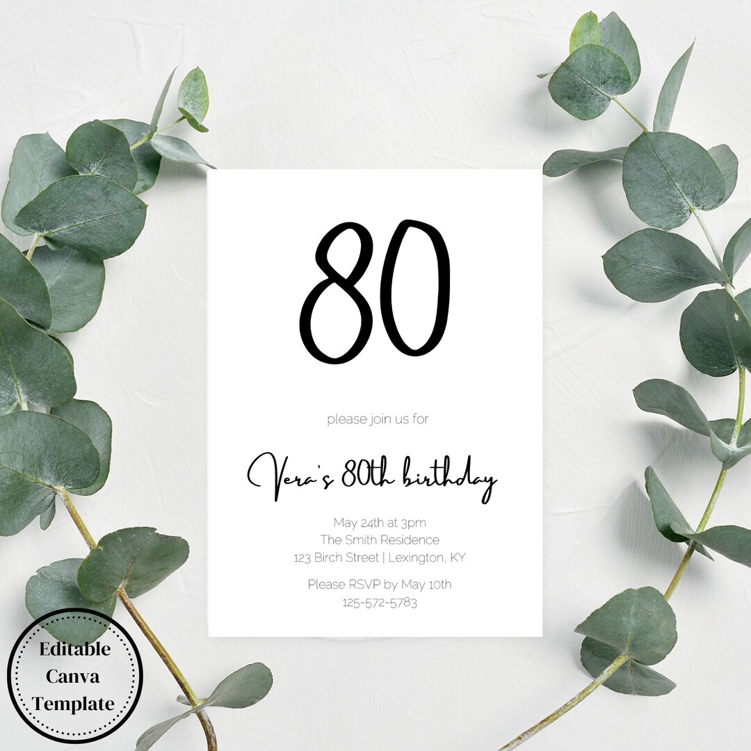 80th Birthday Invitation Template Birthday Invitations for Etsy
