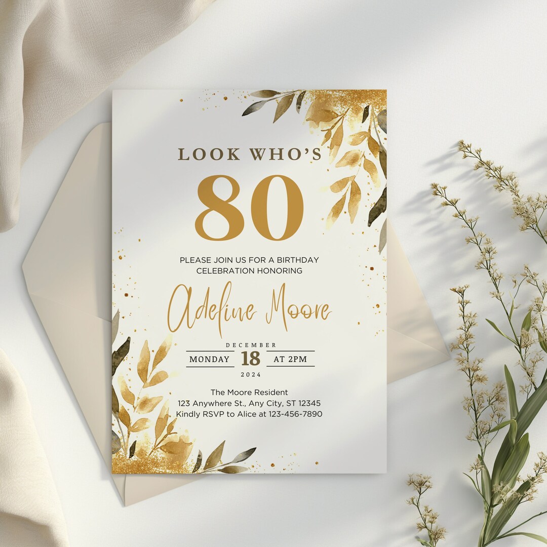 80th Birthday Invitation Printable 80th Party Invite Editable