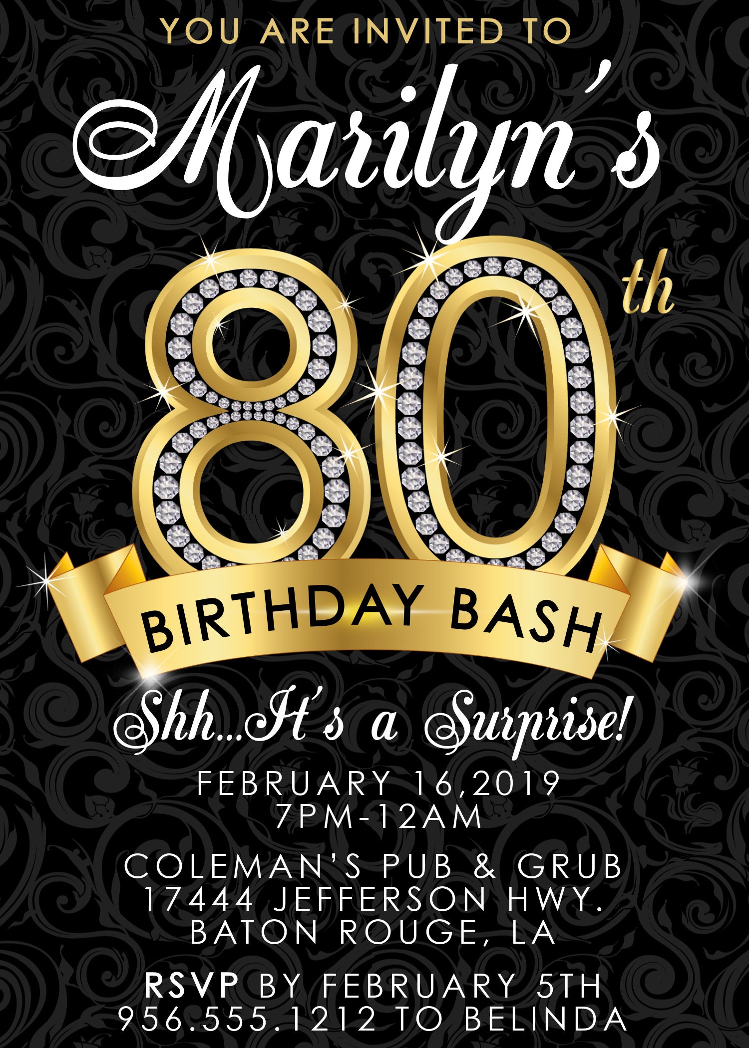 Free Printable Custom 80th Birthday Invitation Templates 54% OFF