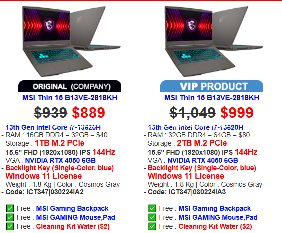 MSI Thin 15 B13VE 2818KH $889 price $889 in Mittakpheap Prampir
