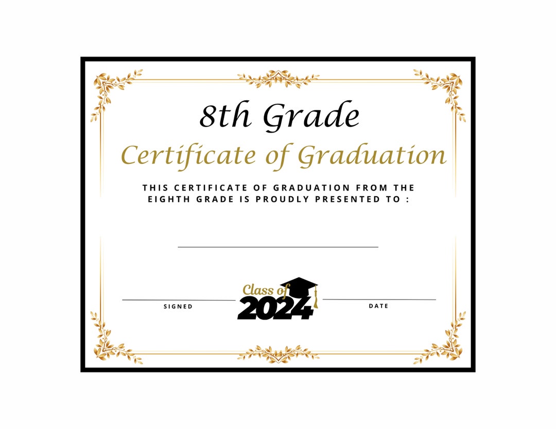 Eighth Grade Graduation Diploma Certificate Instant Download Printable