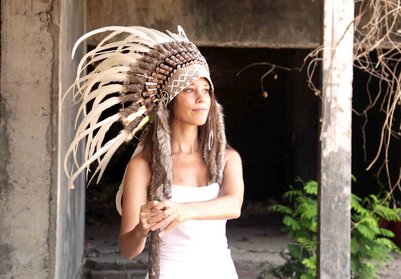 Indian headdress replica short length made with white Etsy