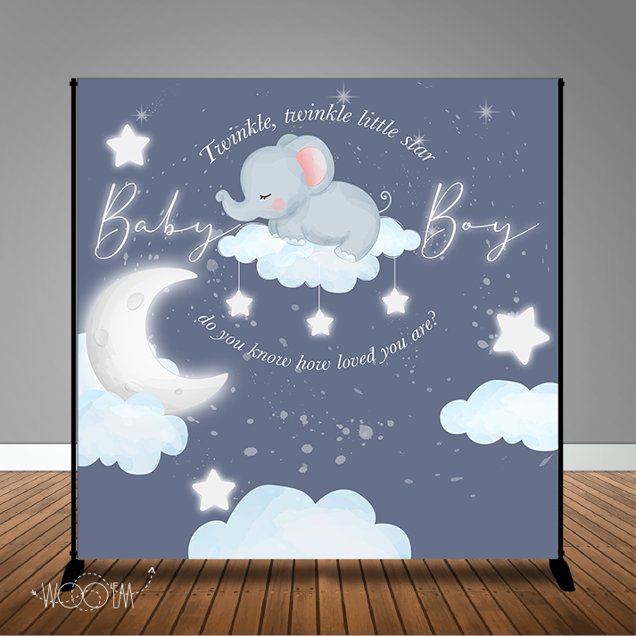 Twinkle Star Baby Shower Slate Blue 8x8 Banner Backdrop/ Step Repeat