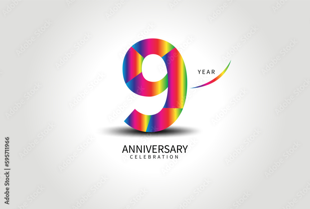 9 Year Anniversary Celebration Logo colorful vector 9 Number Design