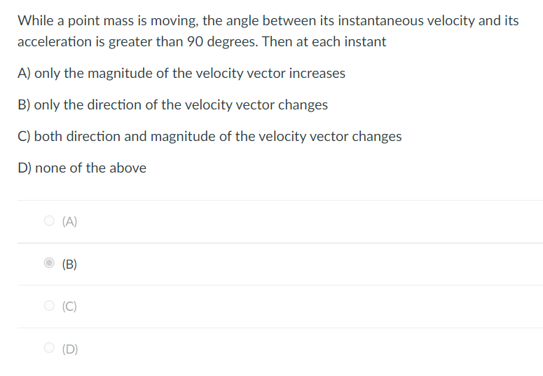 Solved While a point mass is moving the angle between its Chegg com