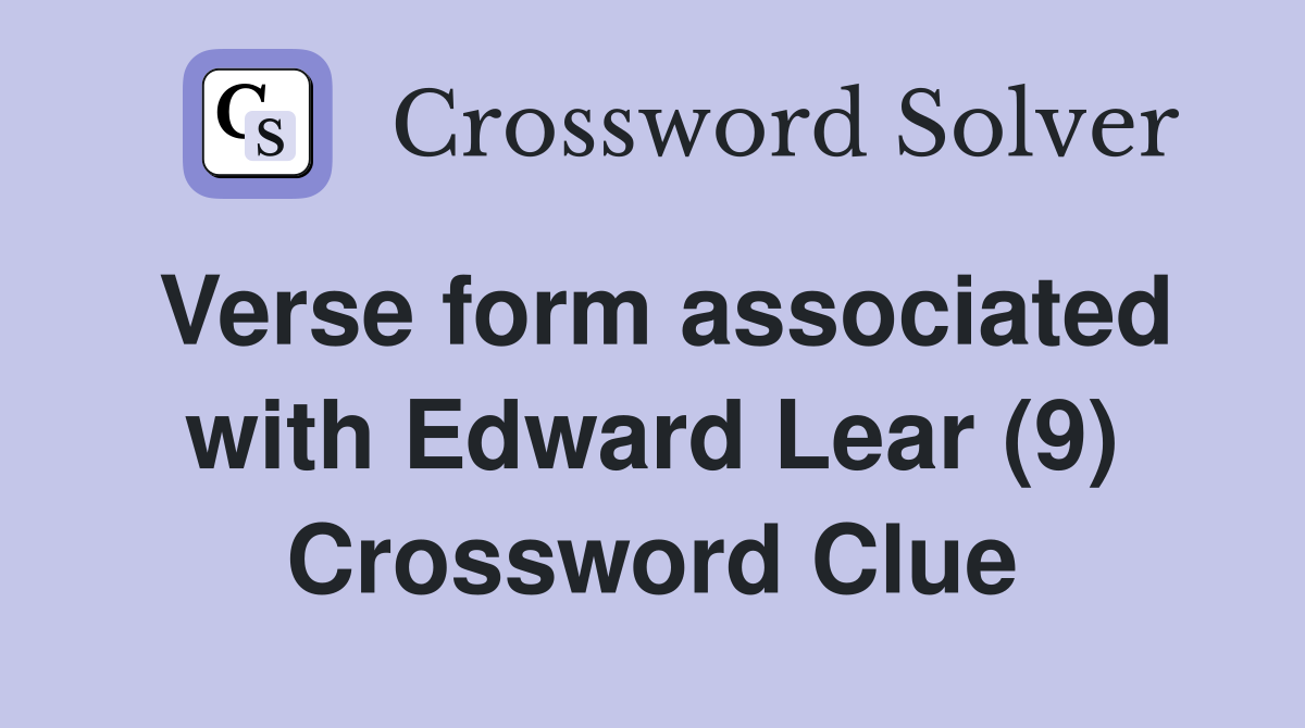 Verse form associated with Edward Lear (9) Crossword Clue Answers