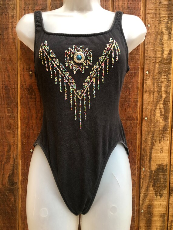 Beaded leotard cotton vintage 90s exercise workout we Gem