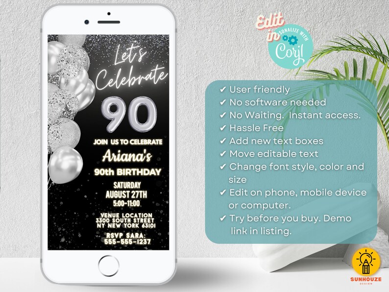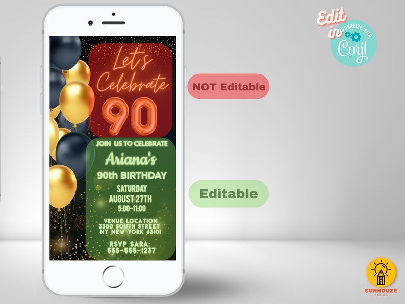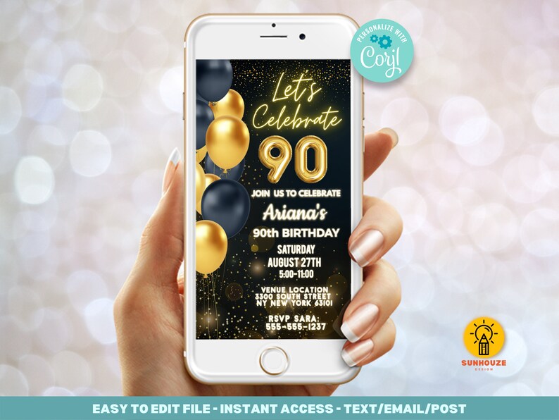 90th Birthday Invitation Template Editable 90th Birthday Digital