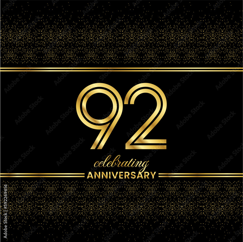 92 Golden Double Line Number 92 Anniversary invitation cover with