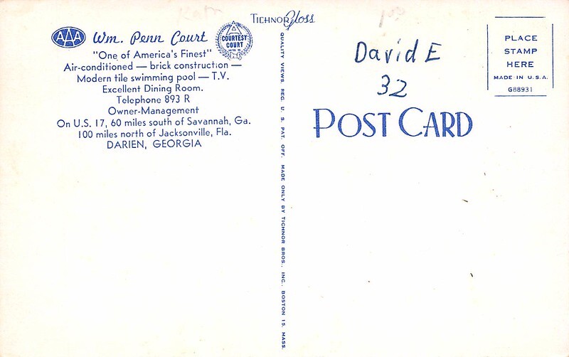 William Penn Court Darien GA Posted Chrome Postcard Free Shipping eBay