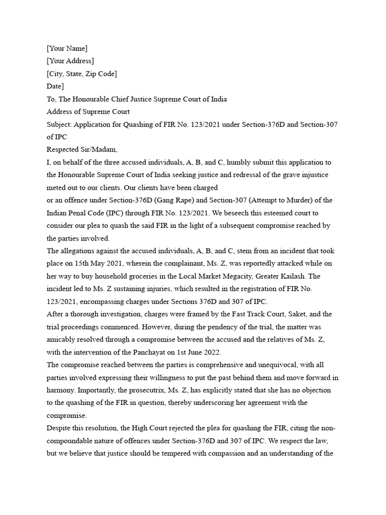 Application To SC PDF Supreme Court Of India Plea