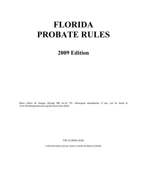 FLORIDA PROBATE RULES Ninth Judicial Circuit Court of Florida