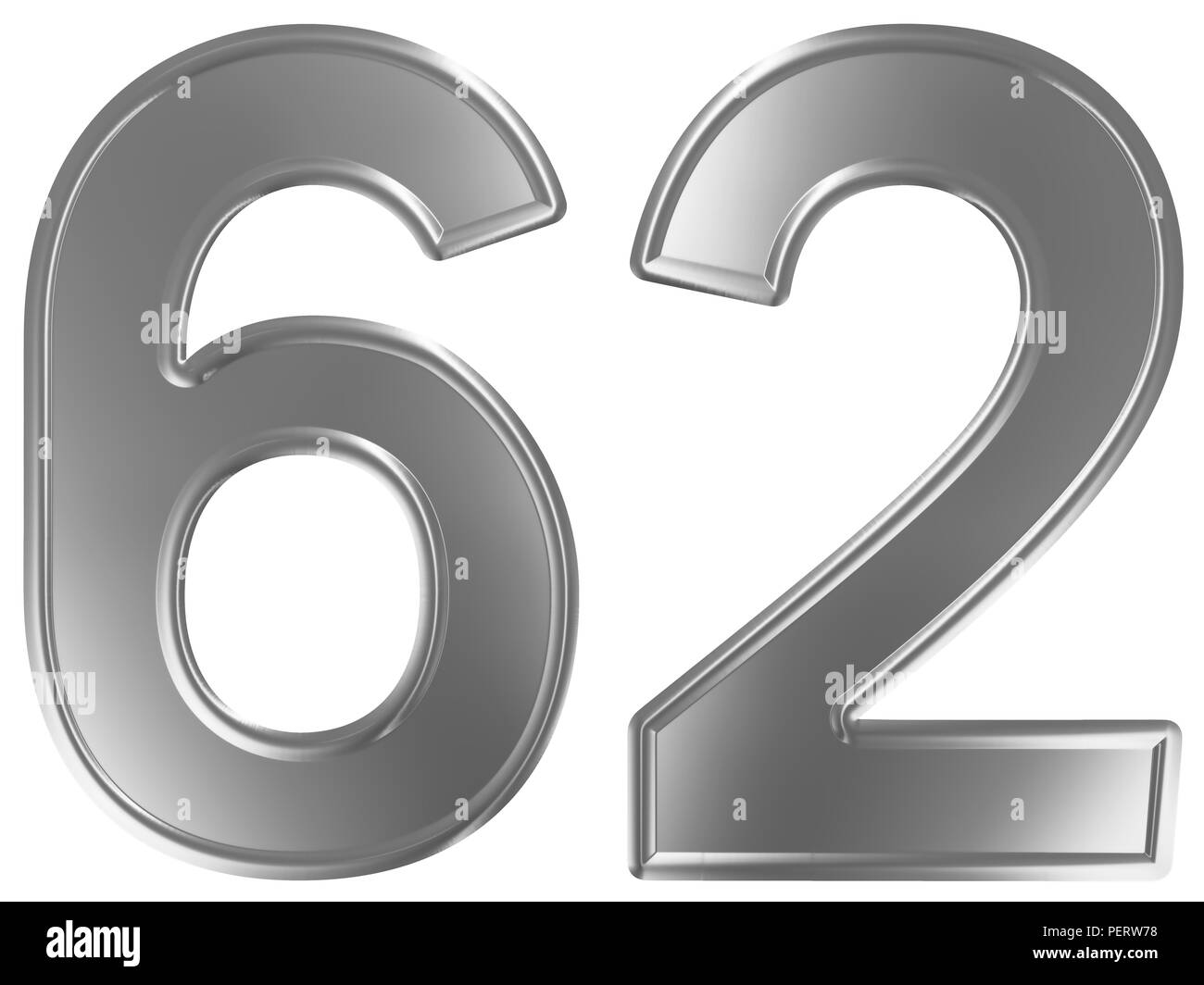 Numeral 62 sixty two isolated on white background 3d render Stock