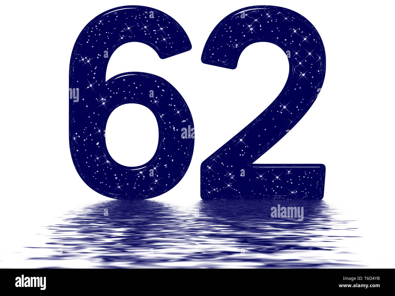 Numeral 62 sixty two star sky texture imitation reflected on the