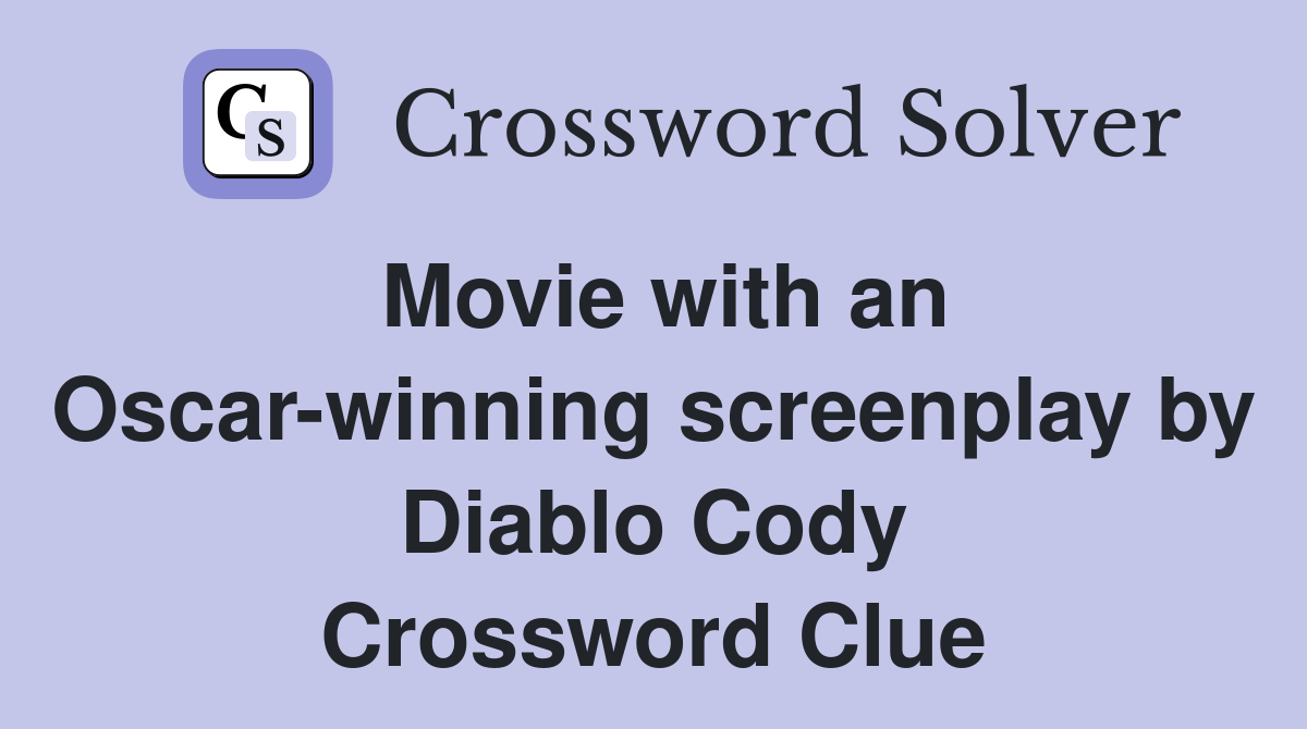Movie with an Oscar winning screenplay by Diablo Cody Crossword Clue