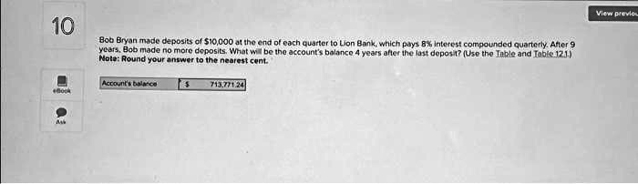 10 Bob Bryan made deposits of 10 000 at the end of each quarter to Lion