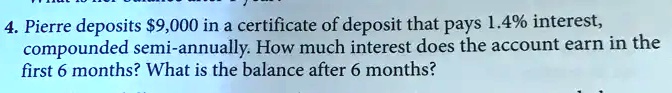 4 Pierre deposits 9 000 in a certificate of deposit that pays 1 4%