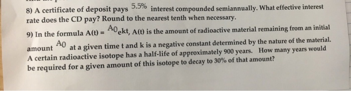 SOLVED:A 3 year certificate of deposit pays interest at a rate r
