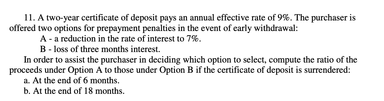 Solved 11 A two year certificate of deposit pays an annual Chegg com