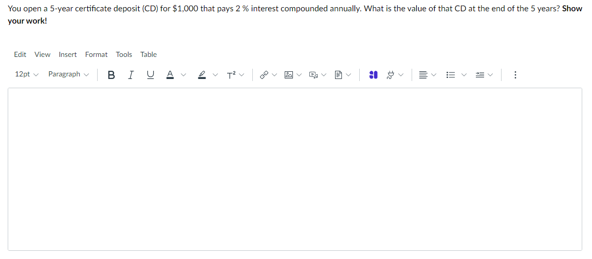 Solved You open a 5 year certificate deposit (CD) for Chegg com