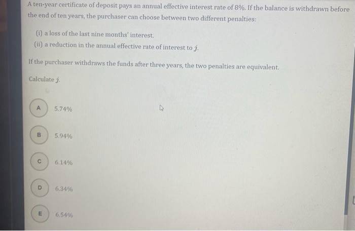 Solved A ten year certificate of deposit pays an annual Chegg com