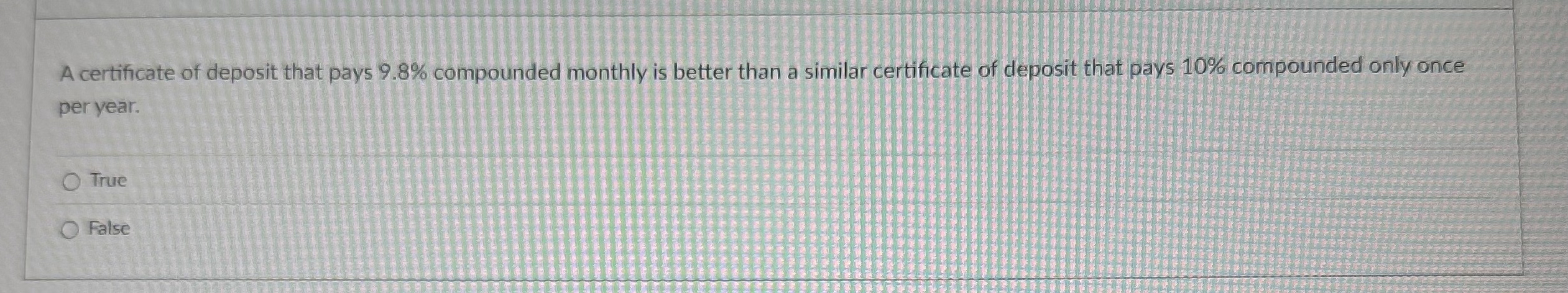 Solved A certificate of deposit that pays 9 8% compounded Chegg com