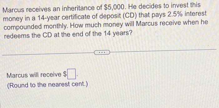 Solved Marcus receives an inheritance of $5 000 He decides Chegg com