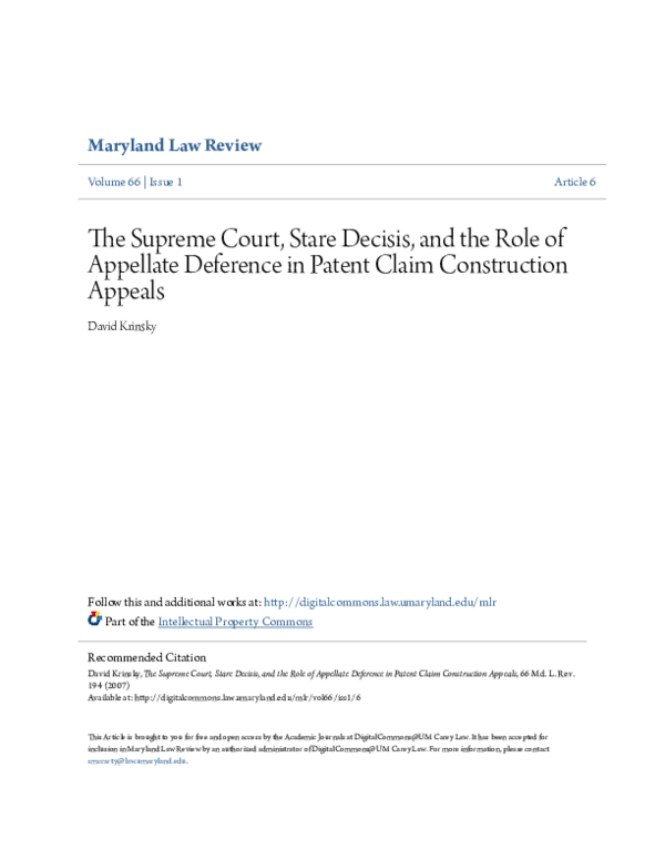 (PDF) The Supreme Court Stare Decisis and the Role of Appellate