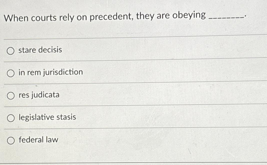 Solved When courts rely on precedent they are obeying stare Chegg com