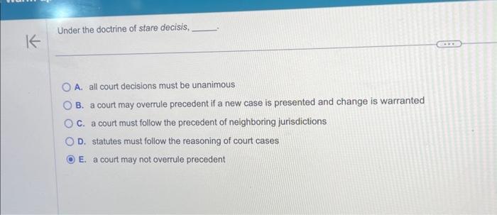 Solved Under the doctrine of stare decisis A all court Chegg com