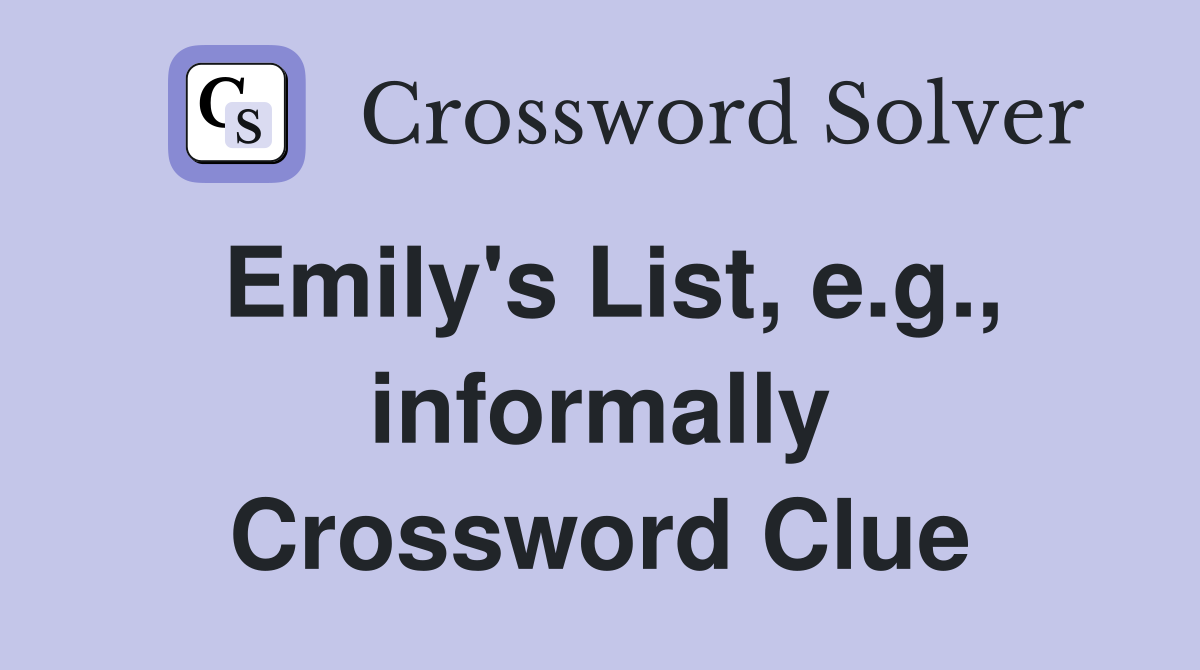 Emily #39 s List e g informally Crossword Clue Answers Crossword Solver